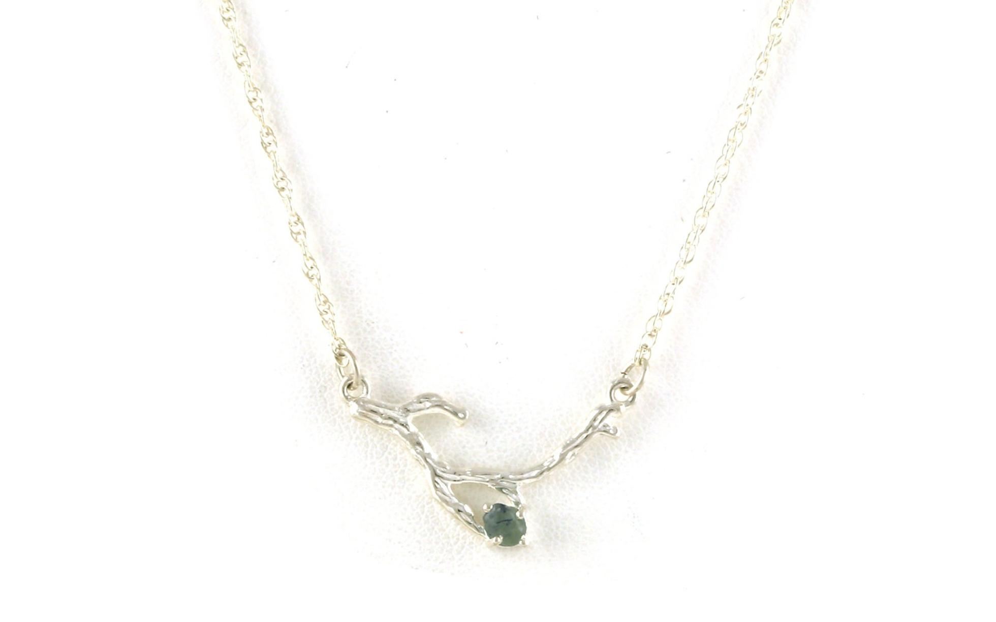 Organic Branch Green Montana Sapphire on Split Chain Necklace in Sterling Silver